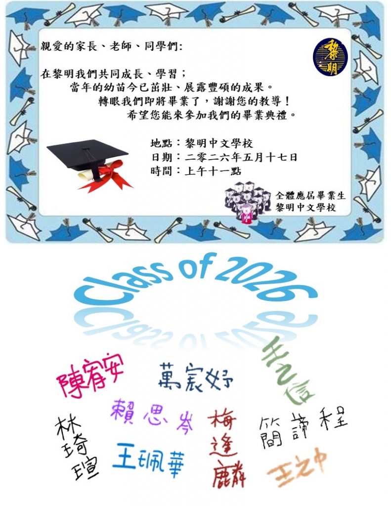 黎明中文學校是非營利事業團體,於一九九五年春創立。本校之教育宗旨在培養學生具備實用的中文能力,並藉由同儕互動和參與團隊活動,培養對中華文化特質之體認。本校建校的理想是:培育身心健全的子弟,鼓勵家長參與及提供和諧快樂的環境,使全校學生、老師、家長、工作人員能共同學習與成長。